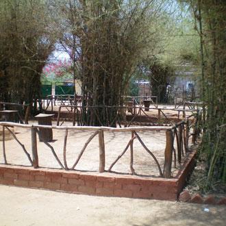 The day starts at 5am, with complimentary bed tea and a park visit in an open jungle safari, with a guide and driver. Elephant rides are also available. This is followed by breakfast on the lawns, a break, and lunch at the Moti Mahal Restaurant. The evening safari consists of tiger tracking in the wild. A wild life video is shown in the restaurant at tea-time. Bonfires, folk dances, barbecues, beverages and dinner conclude the day. Village excursions can also be conducted on foot.