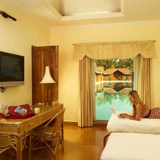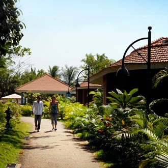 This premium luxury resort is located close to the Cochin International Airport and is convenient for business travelers. All cottages are facing the pool which is the largest pool in any of the hotels in India. The Raindrops Restaurant well-designed with the sound effect of the rainfalls offers gourmet, multi-cuisine fare to its diners. Guests can unwind, shape up and feel relaxed with some ayurvedic massage offered at the spa.