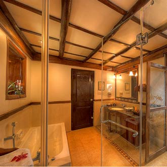 There is a child-free zone to commune privately in a serene setting. Guests can also sneak away to the exclusive infinity pool that borders the plantation and the Dubare Reserve Forest. There is also a lounge on stilts, overlooking paddy fields and the coffee and spice plantation, and is an ideal place to read up a book. An overall wellness can be acquired at the Vaidyasala, an ayurvedic spa that harnesses the ancient secrets of the world's oldest healing system, to rejuvenate, regenerate and revitalize.