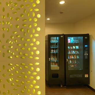 Amenities include: A bar at the roof-top pool, a banquet room at the lobby level and two Big Room and Small Room located one floor below the lobby level. These rooms are ideal for a seminar for up to 225 people or for a party for about 275 and are a perfect venue for web conferencing. There is also the vending machine in the lobby, which provides guests with travel/ dental kits, small bites, chocolates, and cold beverages.
