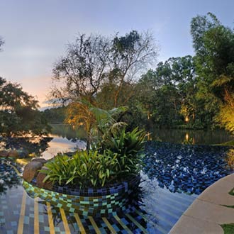 There is a child-free zone to commune privately in a serene setting. Guests can also sneak away to the exclusive infinity pool that borders the plantation and the Dubare Reserve Forest. There is also a lounge on stilts, overlooking paddy fields and the coffee and spice plantation, and is an ideal place to read up a book. An overall wellness can be acquired at the Vaidyasala, an ayurvedic spa that harnesses the ancient secrets of the world's oldest healing system, to rejuvenate, regenerate and revitalize.